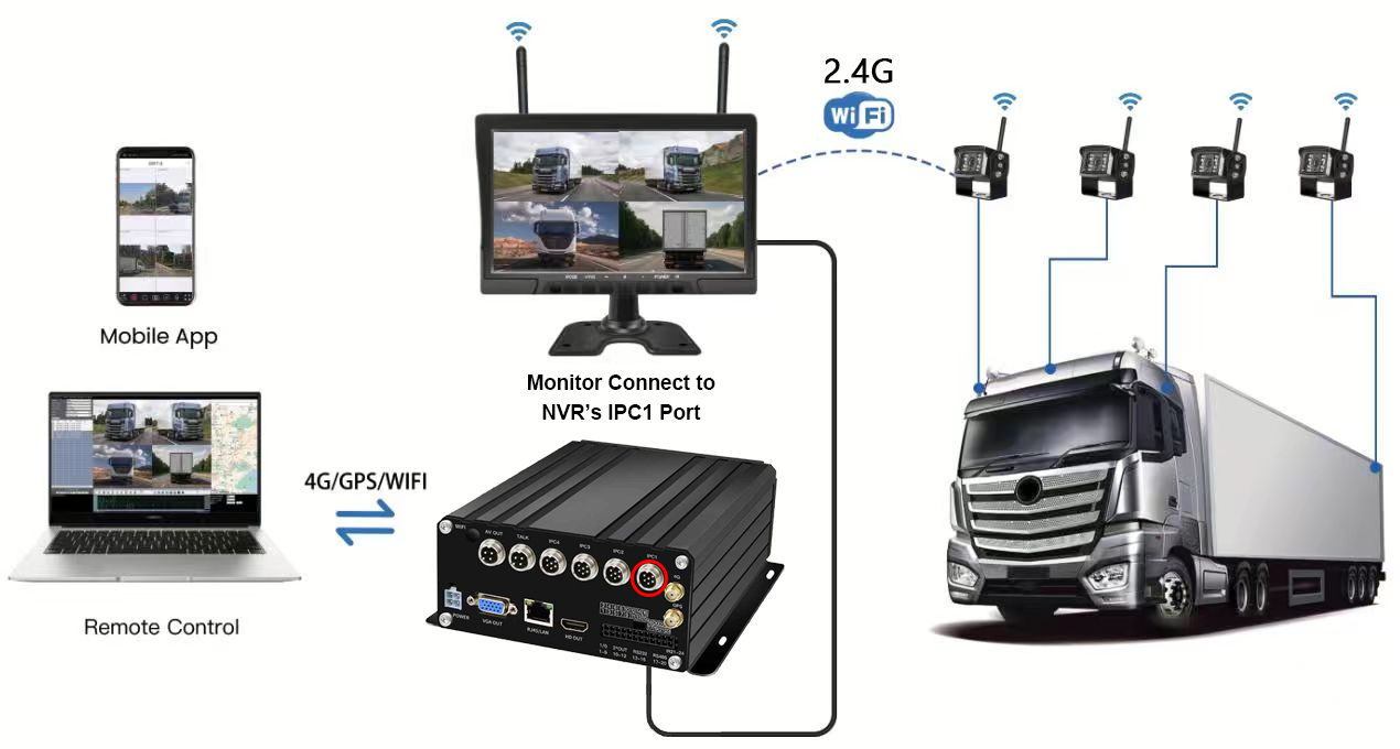 추가 3CH 유선 IP 카메라 입력Carleader 10.1인치 7CH 무선 HDD 모바일 NVR 시스템은 차량 관리용으로 설계된 최첨단 모바일 무선 NVR 시스템입니다. 시스템은 2.4GHz 신호를 통해 10.1인치 와이어리스 릴레이 모니터와 페어링된 4개의 무선 IP 카메라를 사용한 다음 6PIN 항공 커넥터를 통해 릴레이 모니터와 NVR IPC 포트를 연결하고 추가 3CH 유선 IP 카메라 입력도 지원합니다.