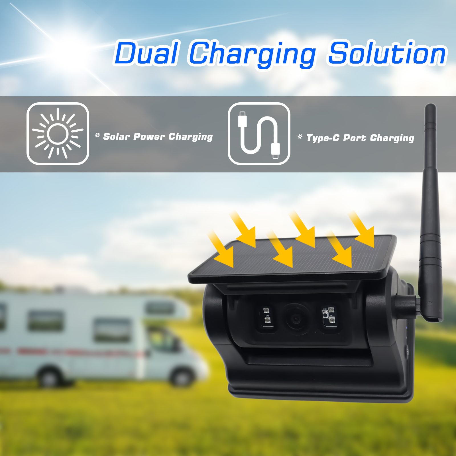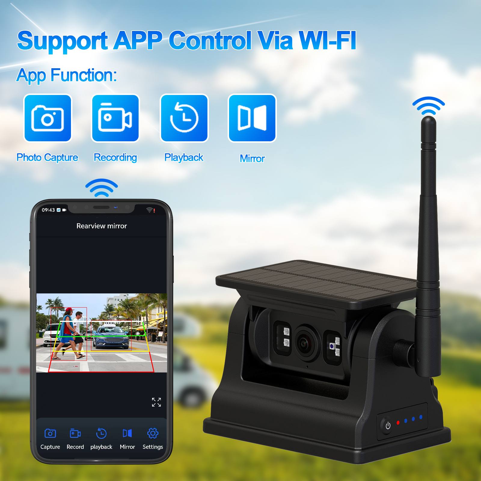 칼리더 AI 감지 태양열 충전식 반전 WIFI 카메라(자석 베이스 포함), 배선이 필요 없고 자석 베이스로 쉽게 설치할 수 있습니다. 태양광 전력 무선 후진 카메라에는 대용량 10500mAh 충전식 배터리가 내장되어 있으며 야간 투시 기능이 있으며 태양 에너지, 에너지 절약 및 환경 보호를 통해 전원을 공급받을 수도 있습니다. 카메라 지원 AI 감지 기능, 보행자 및 차량 감지 가능WIFI를 통해 휴대폰과 연결하고 사용자가 이미지 캡처, 비디오 녹화 및 재생을 허용하고 AI 보정 조정 등을 지원합니다. 이 카메라는 차량을 안전하게 운전하기 위한 차량 보안 모니터링 장비에 대한 최선의 선택입니다.