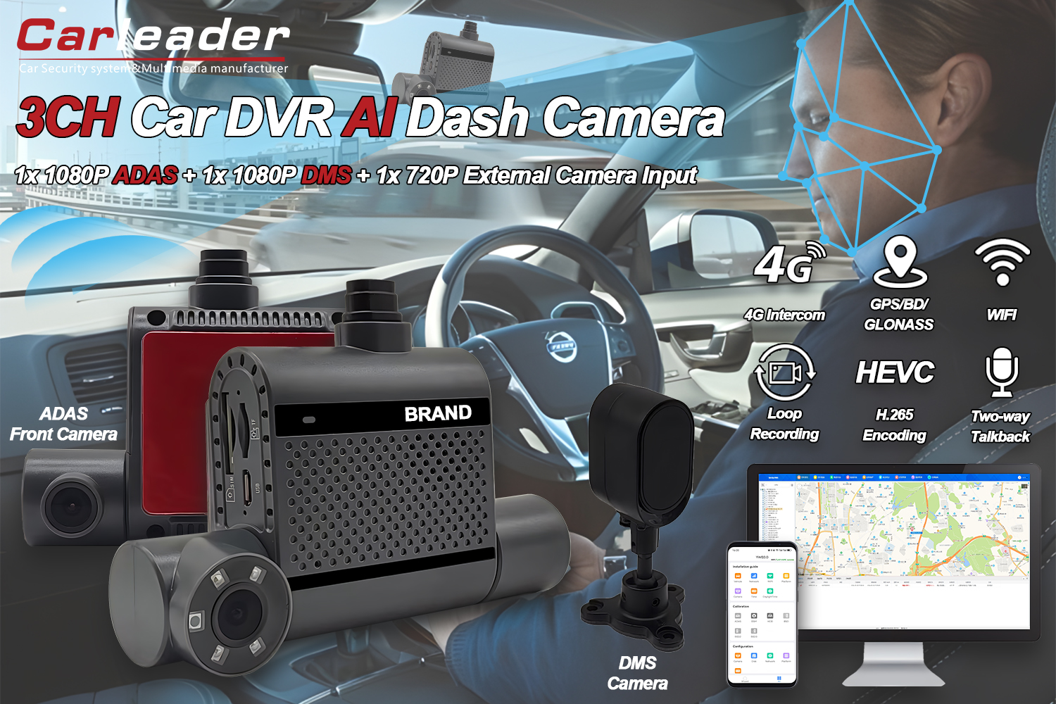 ADAS 및 DSM이있는 Carleader 3 채널 AI 대시 캠을 선택하는 이유는 무엇입니까?