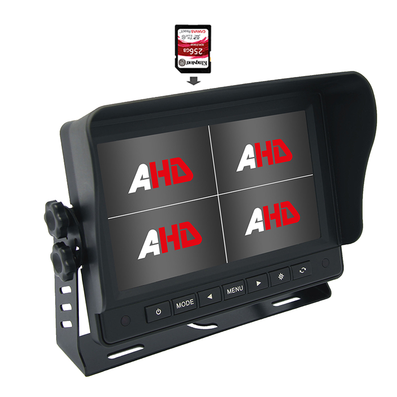 쿼드 AHD 모니터 : Quad AHD 모니터는 차량 안전을 다음 단계로 끌어 올립니다. 4 개의 비디오 피드를 동시에 표시하고 녹음 할 수있는이 시스템은 전체 서라운드 뷰를 제공합니다. 멀티 앤 널 디스플레이 모드와 독립적 인 파일 아카이브를 사용하면 드라이버는 차량의 후면 / 전면을 쉽게 모니터링 할 수 있습니다.