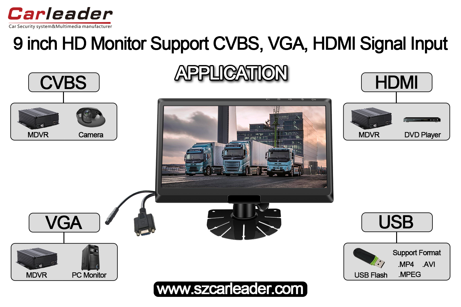 칼리더9인치 IPS 스크린 HD 모니터는 CVBS+HD+VGA 입력을 지원합니다.차량 모니터링 및 MDVR 차량 관리를 위해 설계된 고성능 HD 모니터입니다. 자동차 모니터는 CVBS,HD 및 VGA 신호 입력을 지원합니다. MDVR에 VGA 또는 HD 인터페이스가 있는 경우 9인치 IPS 스크린 자동차 모니터와 함께 사용할 수 있습니다.