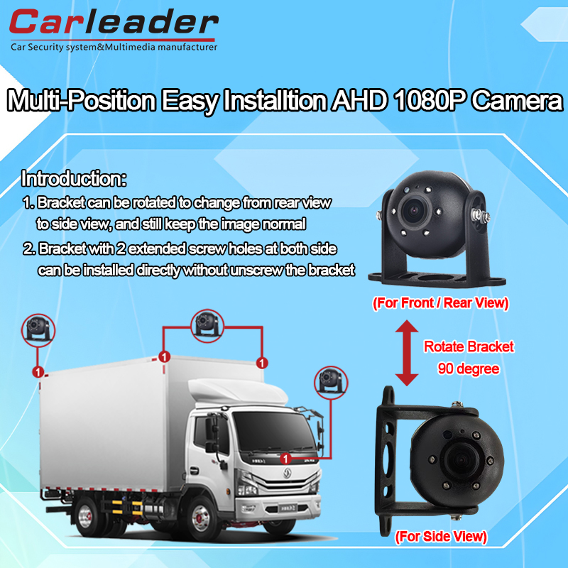 칼리더AHD 대형 차량 전면/측면/후면 보기 카메라는 위, 아래, 오른쪽, 왼쪽에 브래킷 설치 구멍이 있어 카메라가 전면, 측면 및 후면 보기와 같은 다양한 카메라 위치에 맞게 카메라 브래킷을 조정할 수 있어 이 카메라가 차량 안전 감시 시스템과 더욱 호환됩니다.