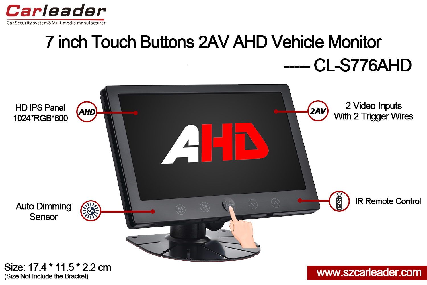 칼리더7인치 IPS 스크린 2CH AHD 입력 터치 버튼 대형 차량 모니터자동차, 보안, 해양 및 산업용으로 이상적입니다.내구성, 유연성 및 고품질 디스플레이 성능을 신뢰할 수 있는 하나의 패키지에 결합합니다.