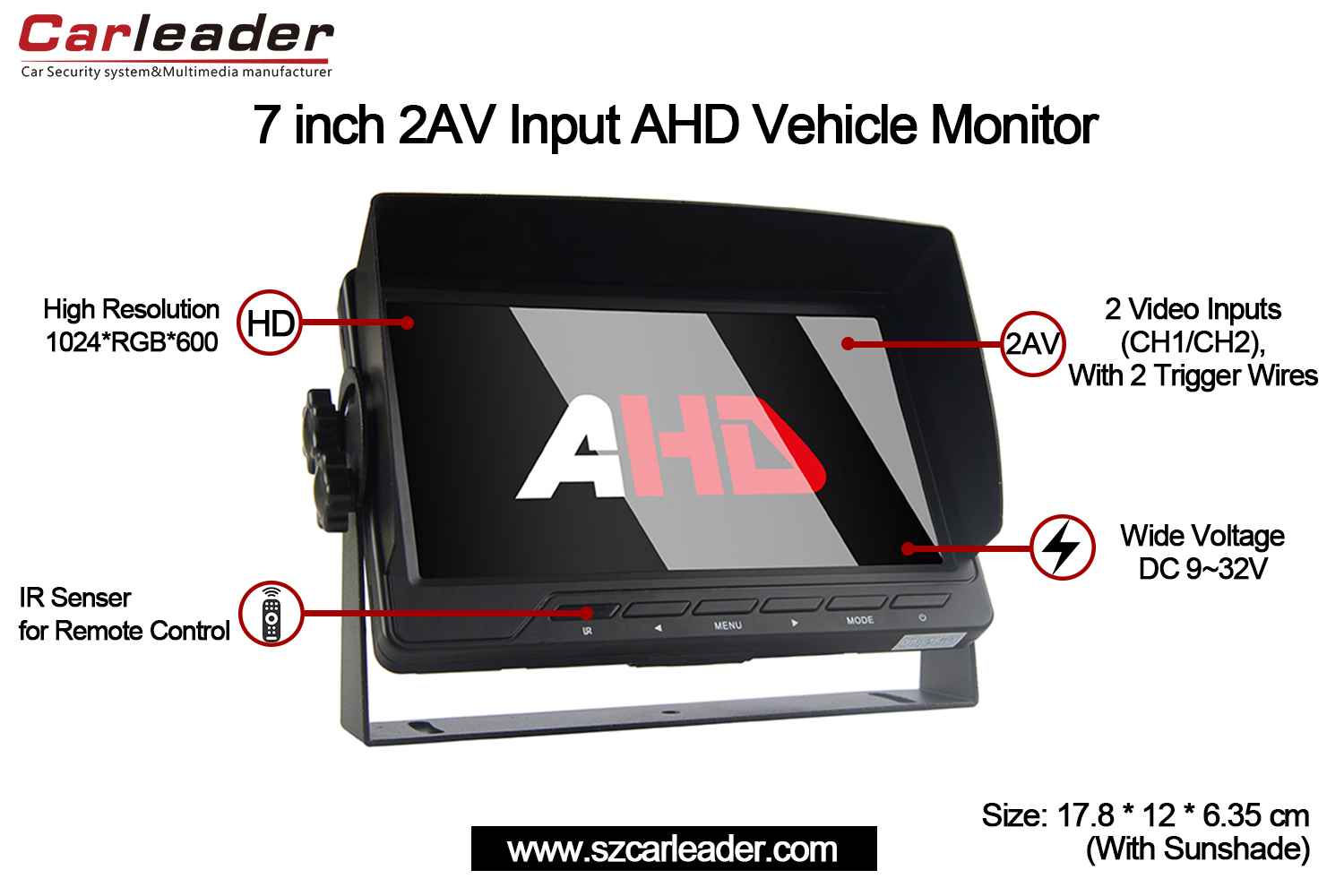 칼리더7인치 AHD 2CH 입력 차량 모니터컴팩트하고 내구성이 뛰어난 디자인에 신뢰성, 명확성 및 다용성을 결합하여 전문가 및 개인 차량 모니터링 요구 사항에 탁월한 선택입니다.