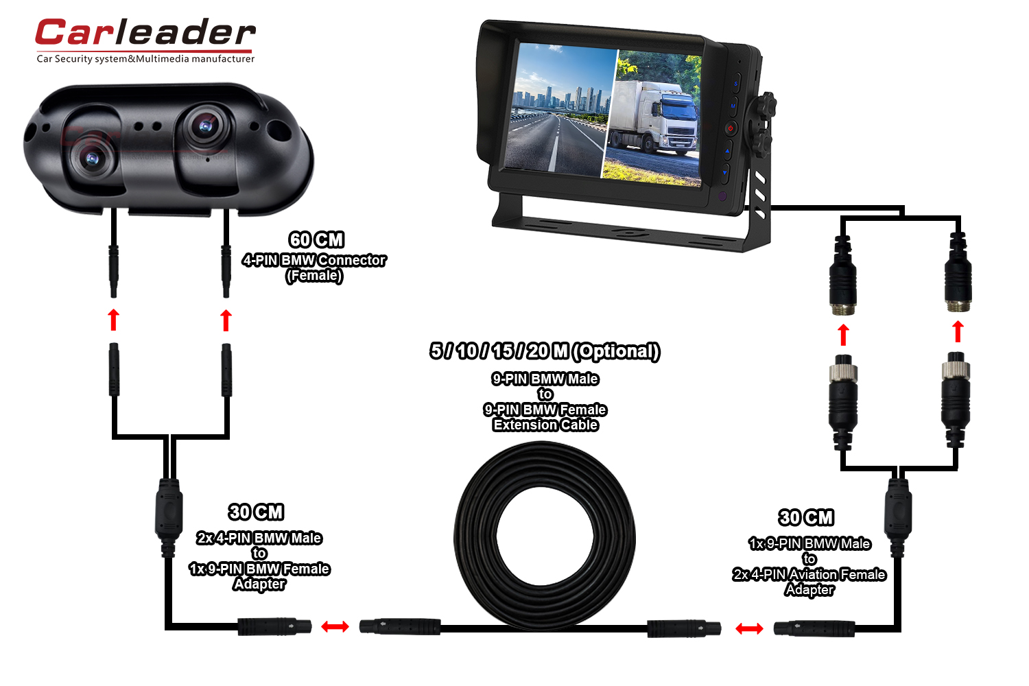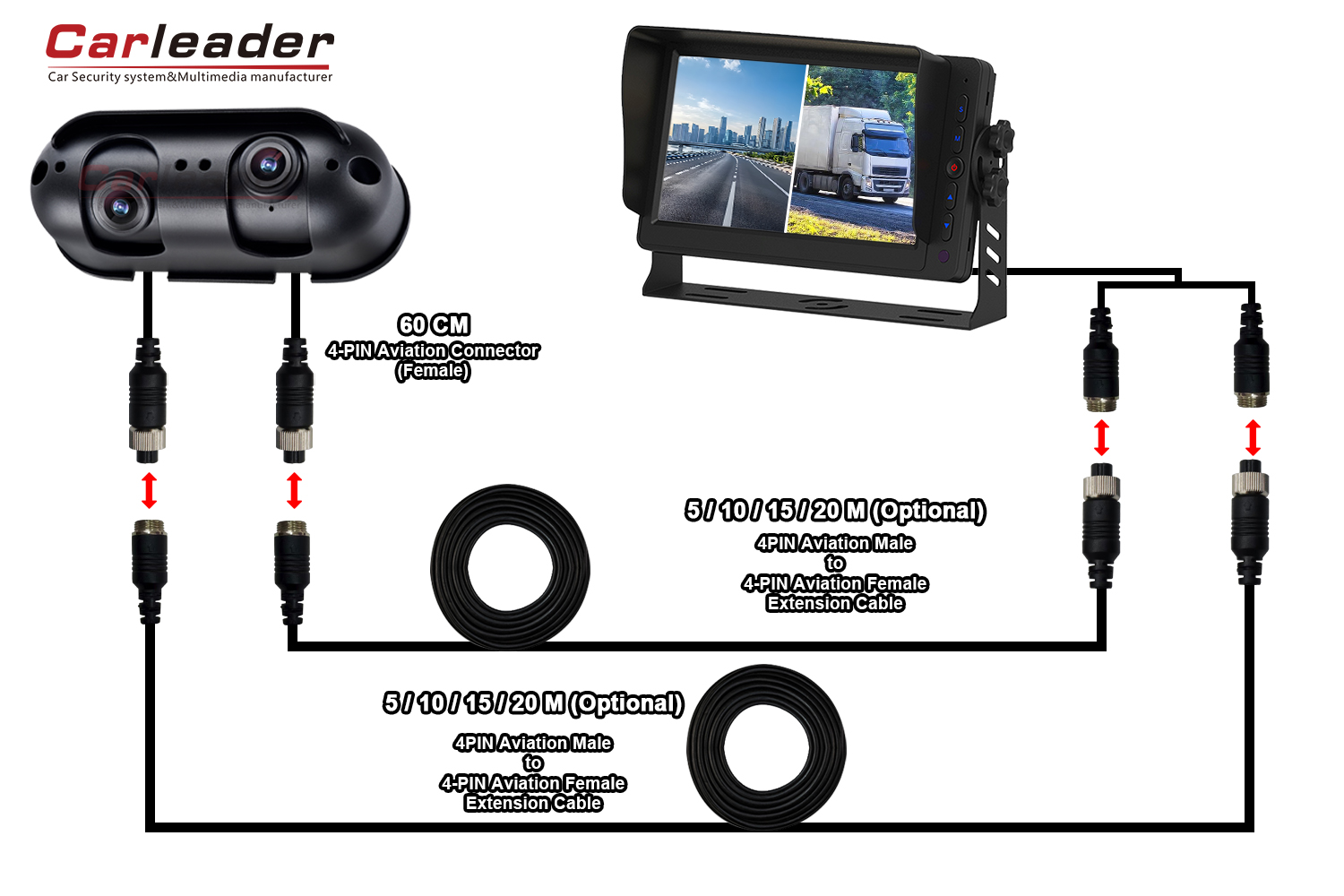 IP69KStarlight AHD 듀얼 렌즈 헤비 듀티 리버싱 카메라는 우수한 품질의 새로운 디자인의 전용 툴링 AHD 카메라로, 하나의 카메라에 듀얼 렌즈가 통합되어 있으며 렌즈 각도를 별도로 조절할 수 있어 사용자가 동일한 모니터에서 근거리 및 원거리 시력을 모두 볼 수 있습니다.